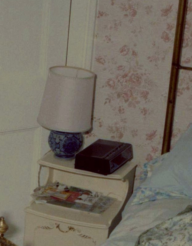 “I took possession of a bedside lamp which had apparent areas of dark staining on the lampshade. This lamp was in the main bedroom on top of the bedside cabinet to the right of the bed. I recognized this lamp from the scene photographs taken in 1985 as being identical to a bedside lamp which was in the main bedroom on the night of the murders.”[28]